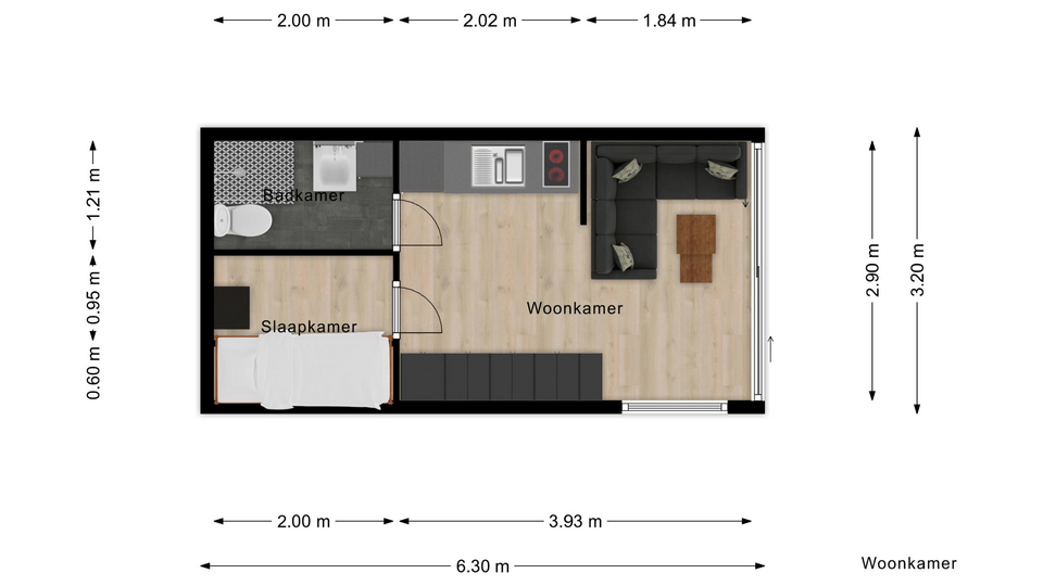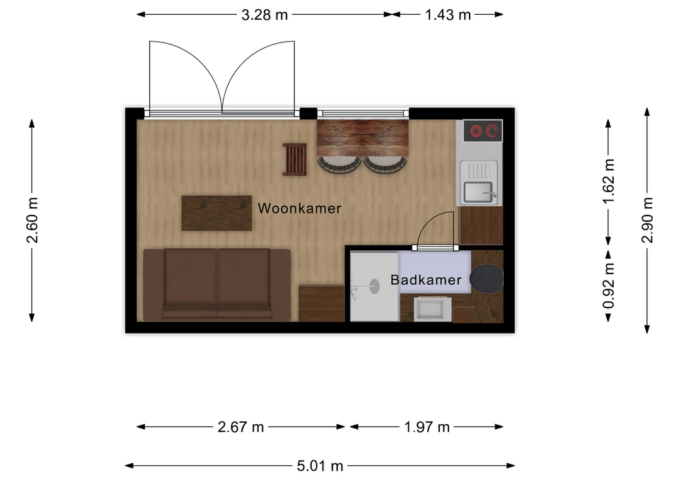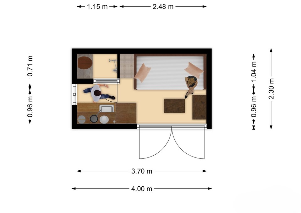 Vårt minsta lilla hus, så enkelt det kan bli, men ändå med allt man behöver. Det kommer att finnas möjlighet till att bygga om en del saker efter behov, såsom bäddsoffan och från soffbord till matbord.